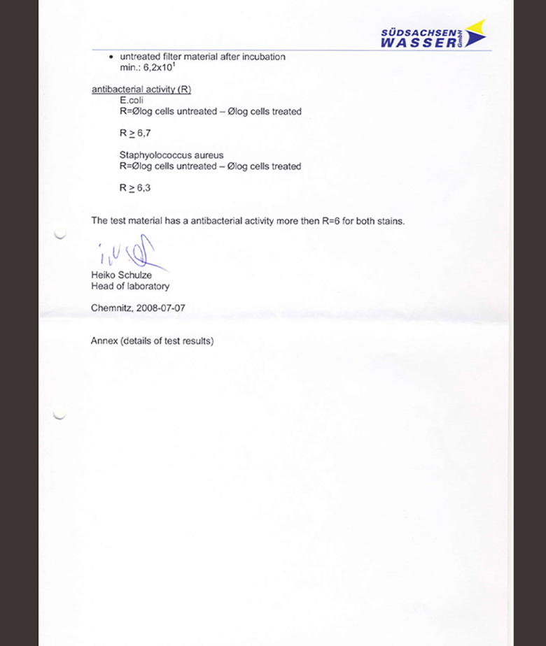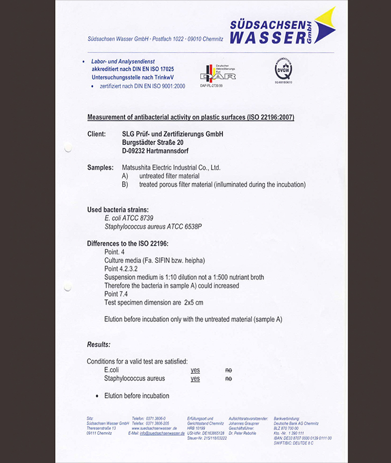 Công nghệ giặt lạnh diệt khuẩn Blue Ag+ có thể diệt được khuẩn E.coli và khuẩn tụ cầu vàng Staphylococcuasureu, là hai tác nhân gây bệnh đường ruột và kích ứng da, đã được cấp chứng nhận bởi Sudsachsen Wasser (Đức).